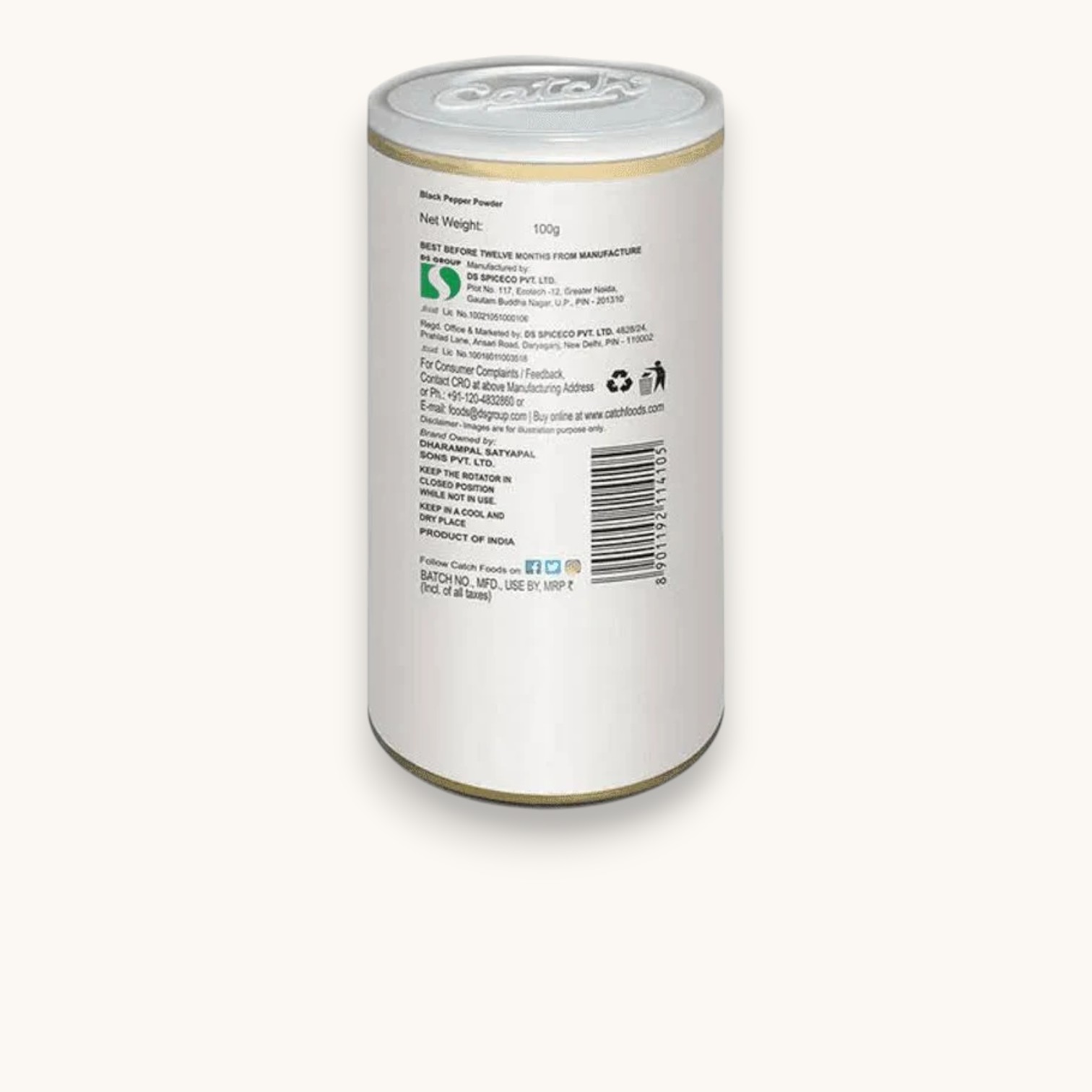 The Solution: Freshness You Can Shake Catch Black Pepper Sprinkler solves the freshness dilemma by combining high-quality sourcing with innovative packaging. By selecting peppercorns from the lush estates of Kerala and Karnataka, Catch ensures a high piperine content—the compound responsible for pepper's signature pungency. The moisture-proof sprinkler container acts as a shield, locking in the aroma until the moment you use it. It provides a hygienic, "low-touch" way to add a sophisticated heat to your eggs, soups, or stir-fries without the need for a separate grinder or messy pouches.